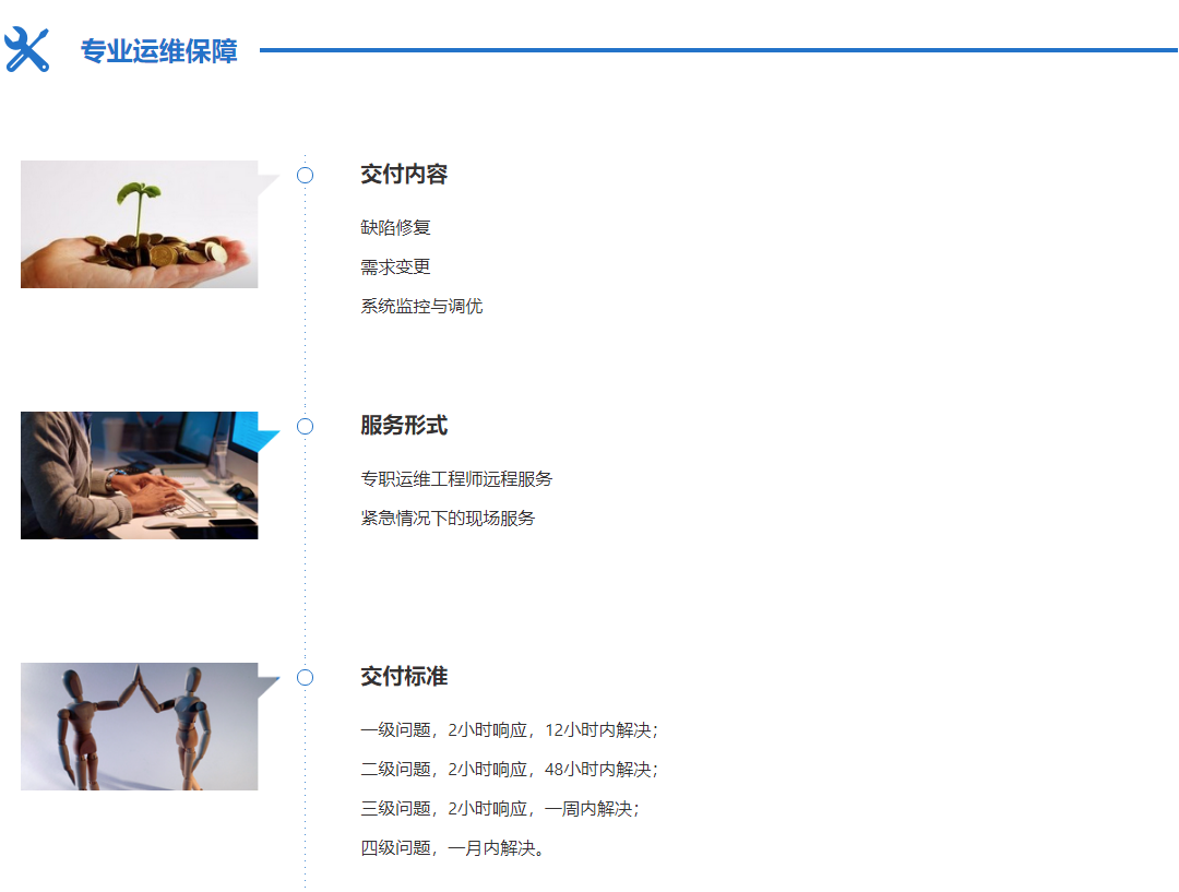 互聯(lián)網(wǎng)應(yīng)用研發(fā)、運維一體化服務(wù),面向具有明確的信息系統(tǒng)建設(shè)需求的企業(yè),提供快速交付軟件產(chǎn)品服務(wù),并可根據(jù)企業(yè)需求進行后期迭代式開發(fā)服務(wù)。